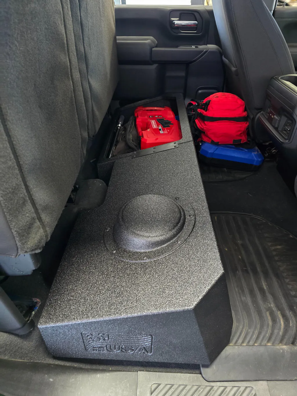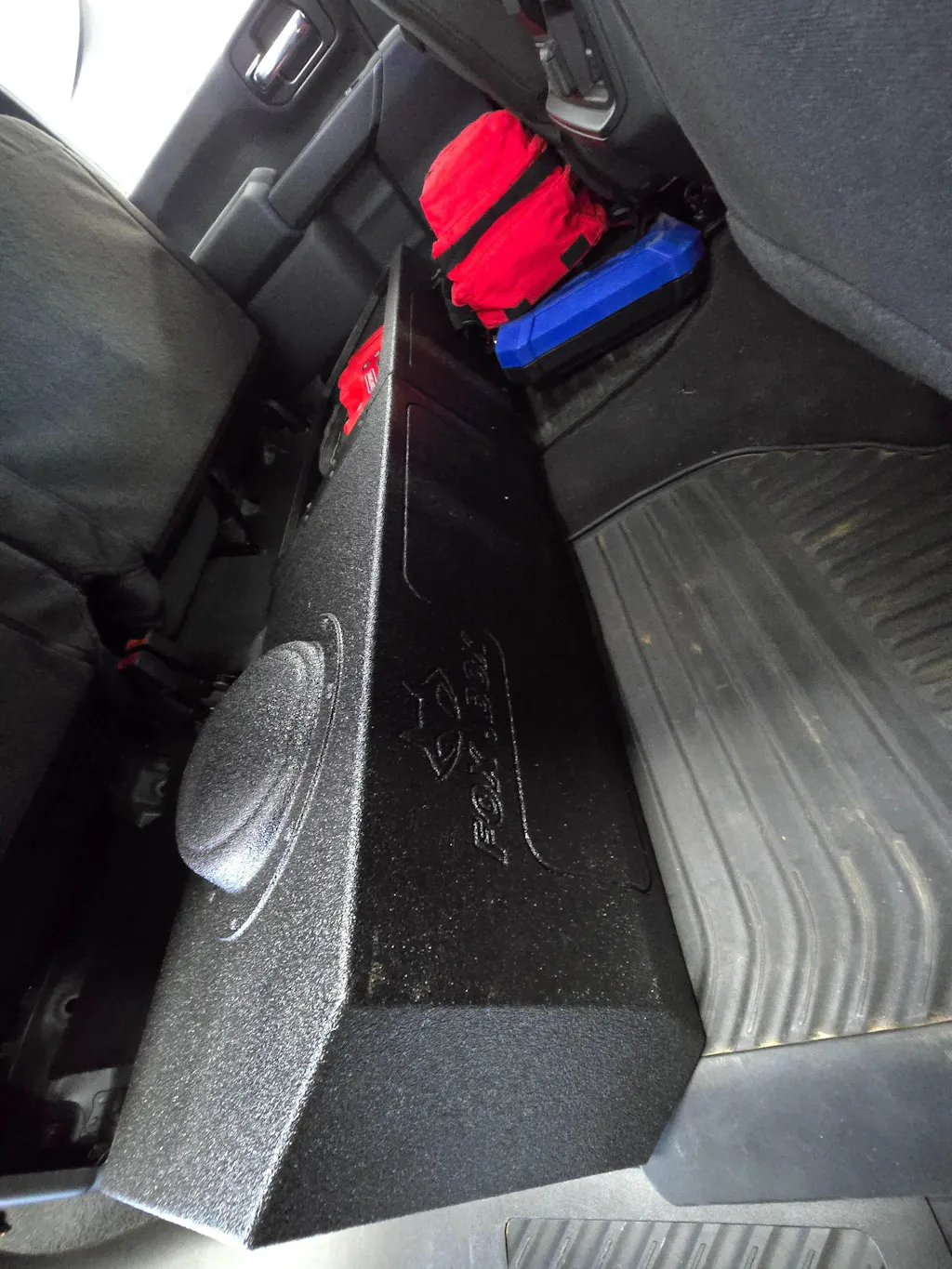 Fits better than O.Js glove. Sprayed for a tuff workplace environment. Plenty of storage and the amount of output from this ported enclosure has the truck rockin...love it.